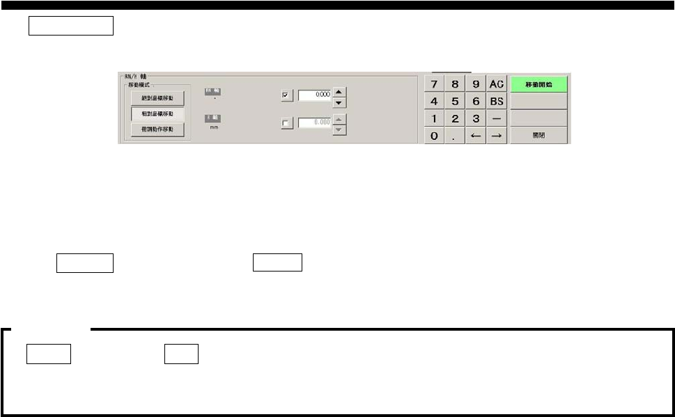 由对话框的 移動模式 (移动模式) 框中,点击 絕對座標移動 (绝对坐标移动) 、 相對座標移動