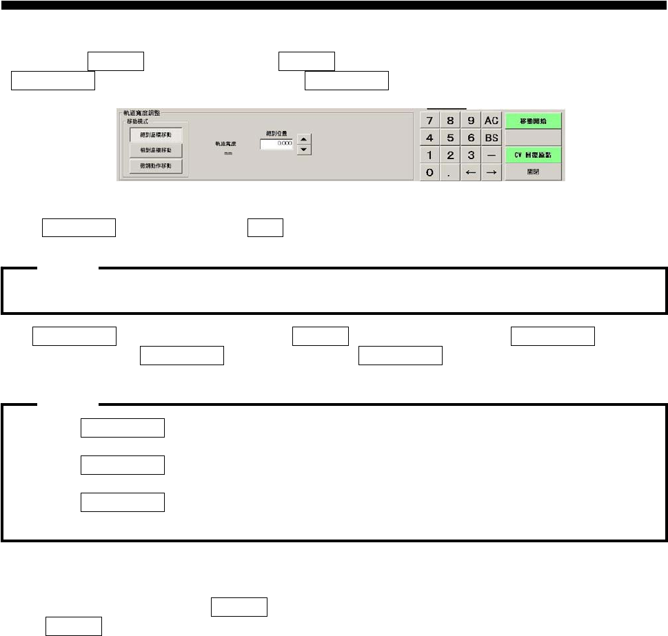 指定微调动作移动时,会出现以下的 軌道寬度調整 ( 轨道宽度调整) 对话