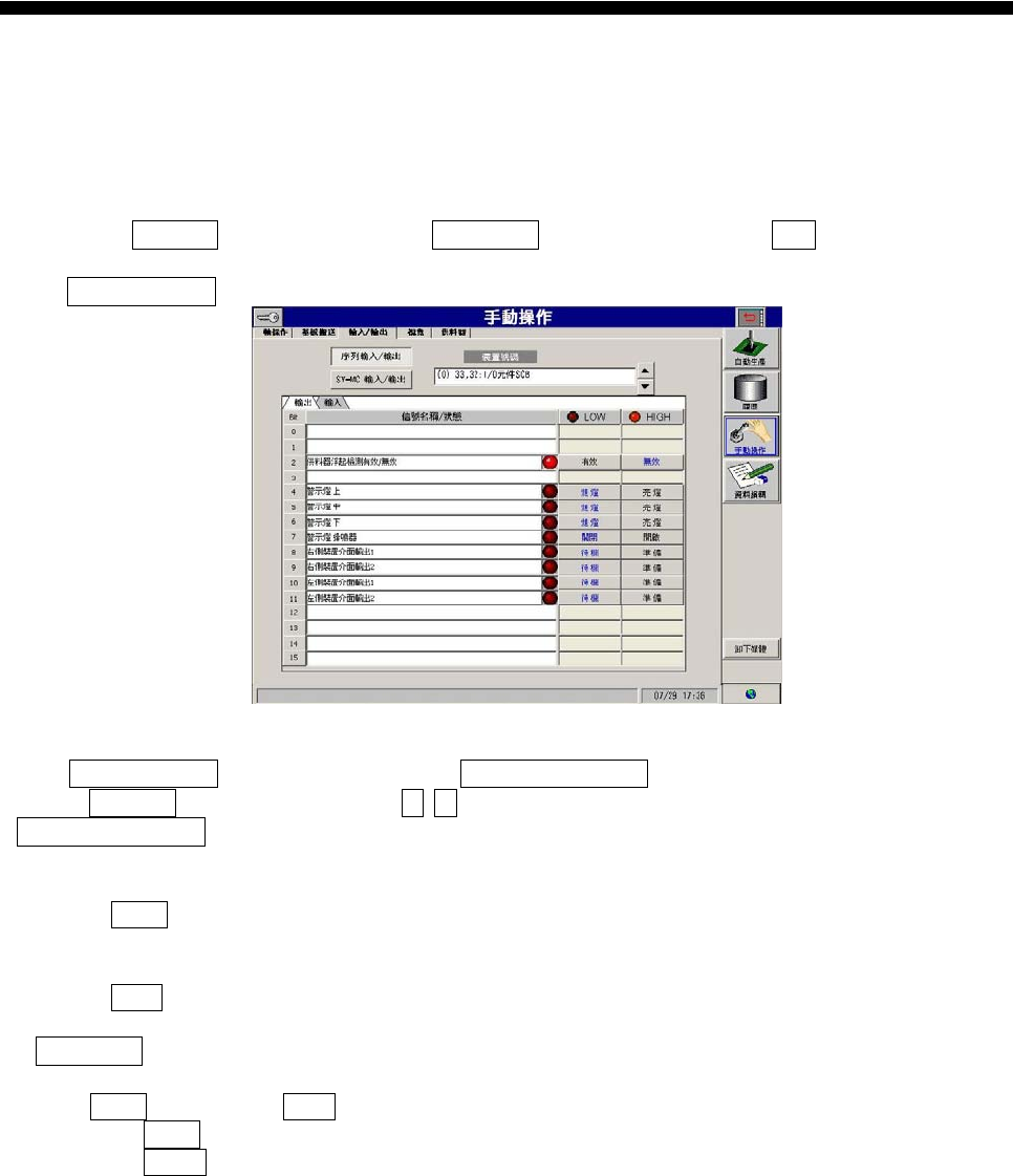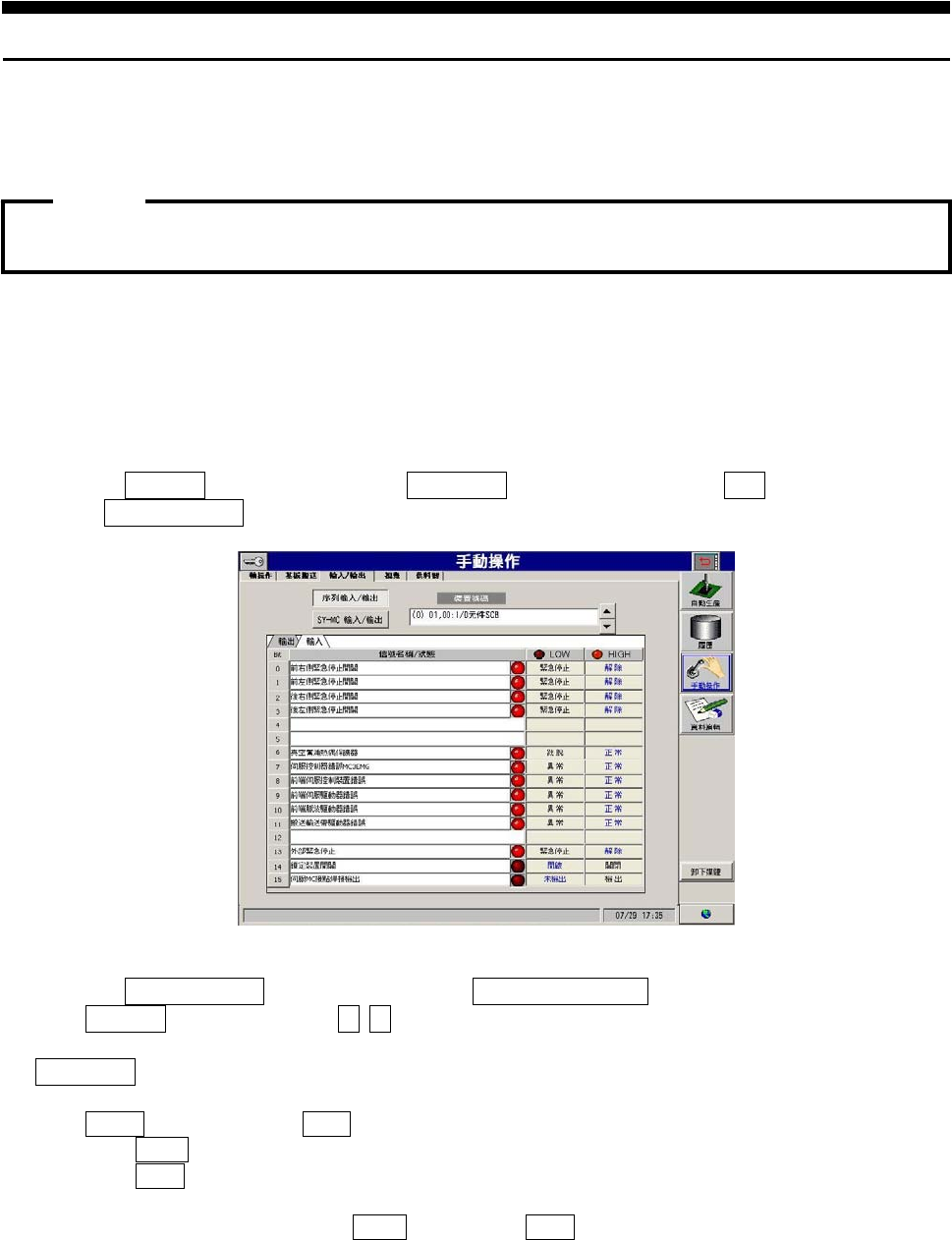 图 3.3.1 手動操作- 輸入/ 輸出( 手动操作- 输入/ 输出) 画面