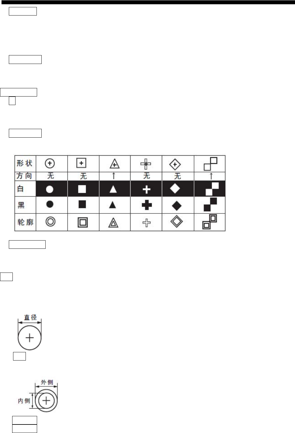 输入各个定位标记形状的尺寸。根据所选择的标记形状输入项目会不一样。