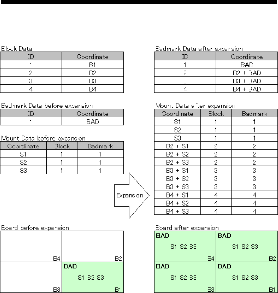 给步骤设定了不良标记时,和零件一样不良标记也能展开。以下是零件和不良标记的展开例。不进行展开而使用