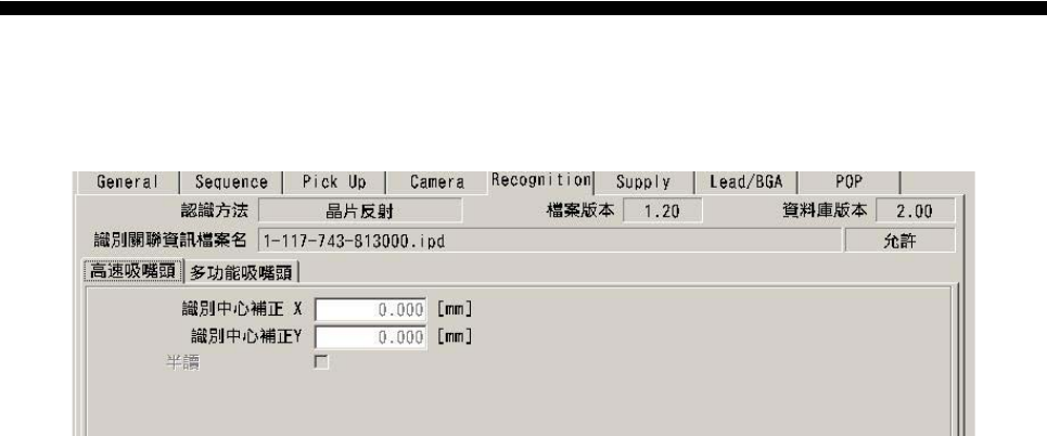 图 1.3.5-1 Recognition 画面 (高速贴装头)