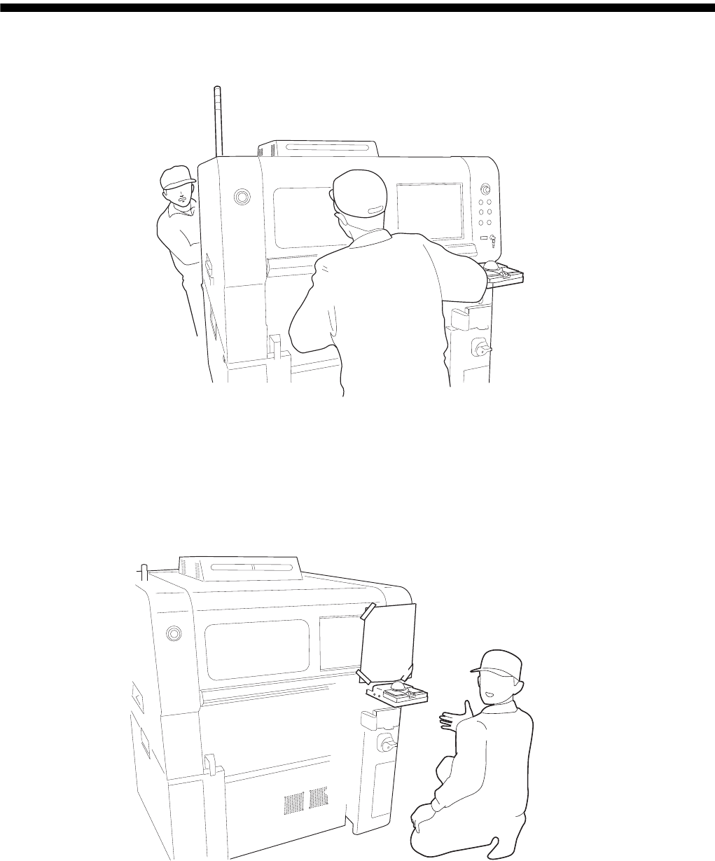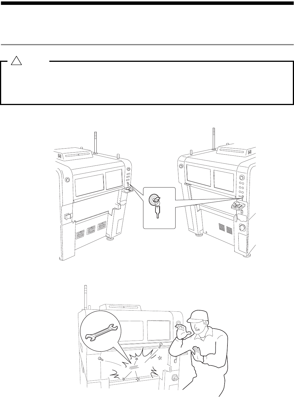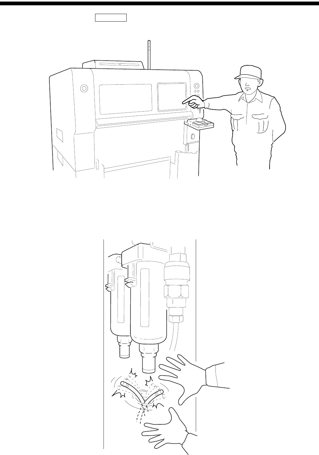 通,请在机械的主电流断路器和工厂总电源开关上粘贴 “不要接通电源”的注意标识。