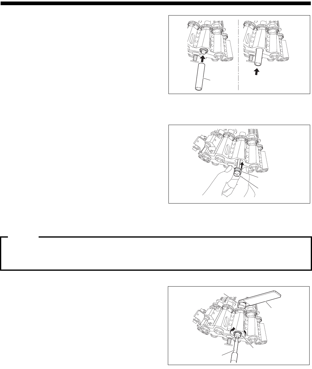 保养篇 2. 维修检 查 2-30 电子零件装着机 SI-G200MK5 (CS) ③ 用轴承压入治具将轴承推至接触到底 部 为止。 6. 安装顺序 1 中分装的 轴承托架。 ① 用手旋转轴承托架治具, 同时安装 轴承 托架。尽量用手拧紧。 预载作业前 在用手旋转插入轴承托 架之后,为了磨合旋转座内轴环的 位置,请用手将锡球衬套托 架向左右 各旋转数次。 ② 将扳手套筒盖在锡球衬套托架上部。 ③ 将扳手挂在扳手套筒上。 ④ 用手按压扳手…