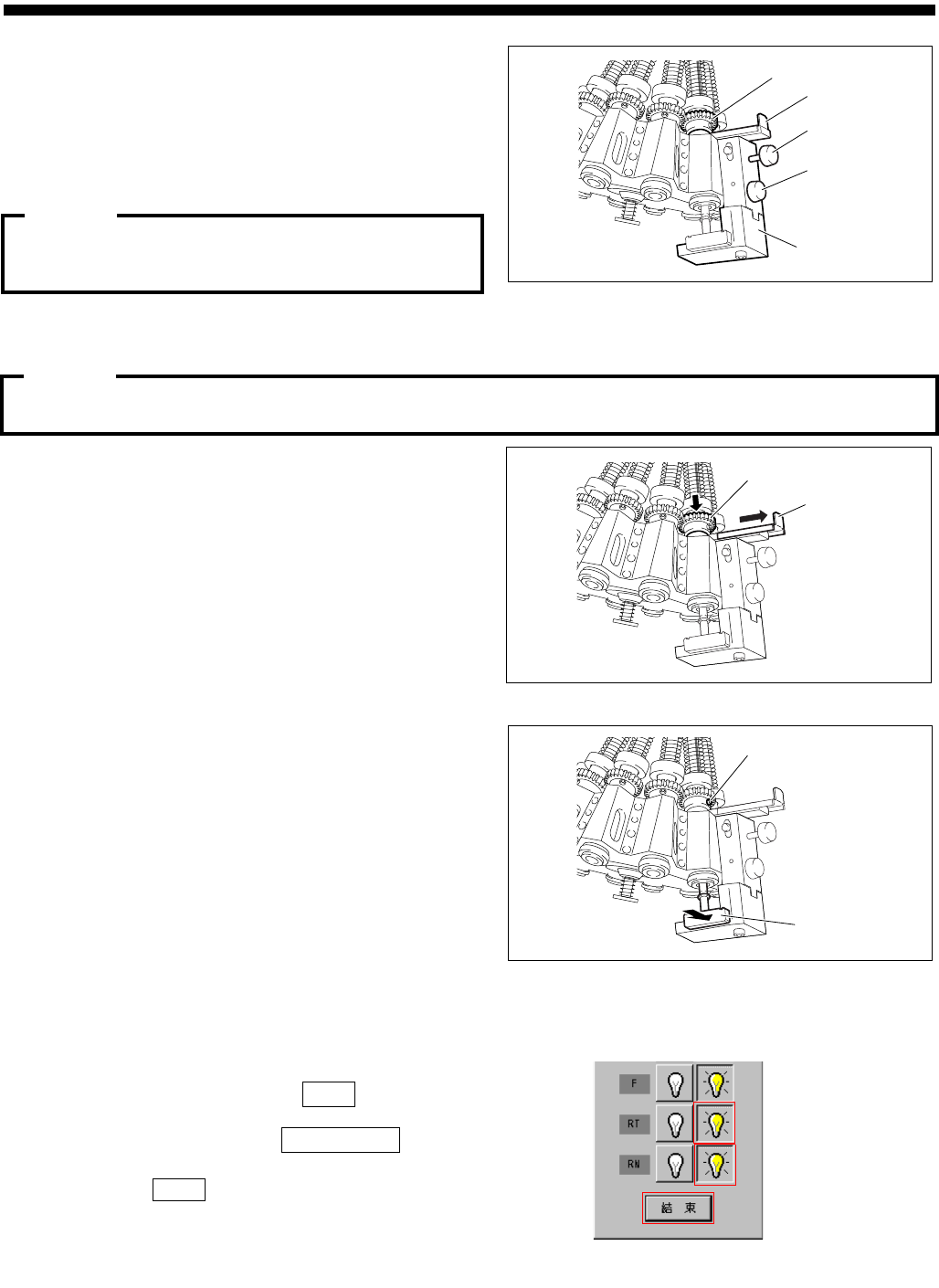 ④ 确认小齿轮架在控制杆部的上部,并拧进吸嘴相位调整治具的螺丝