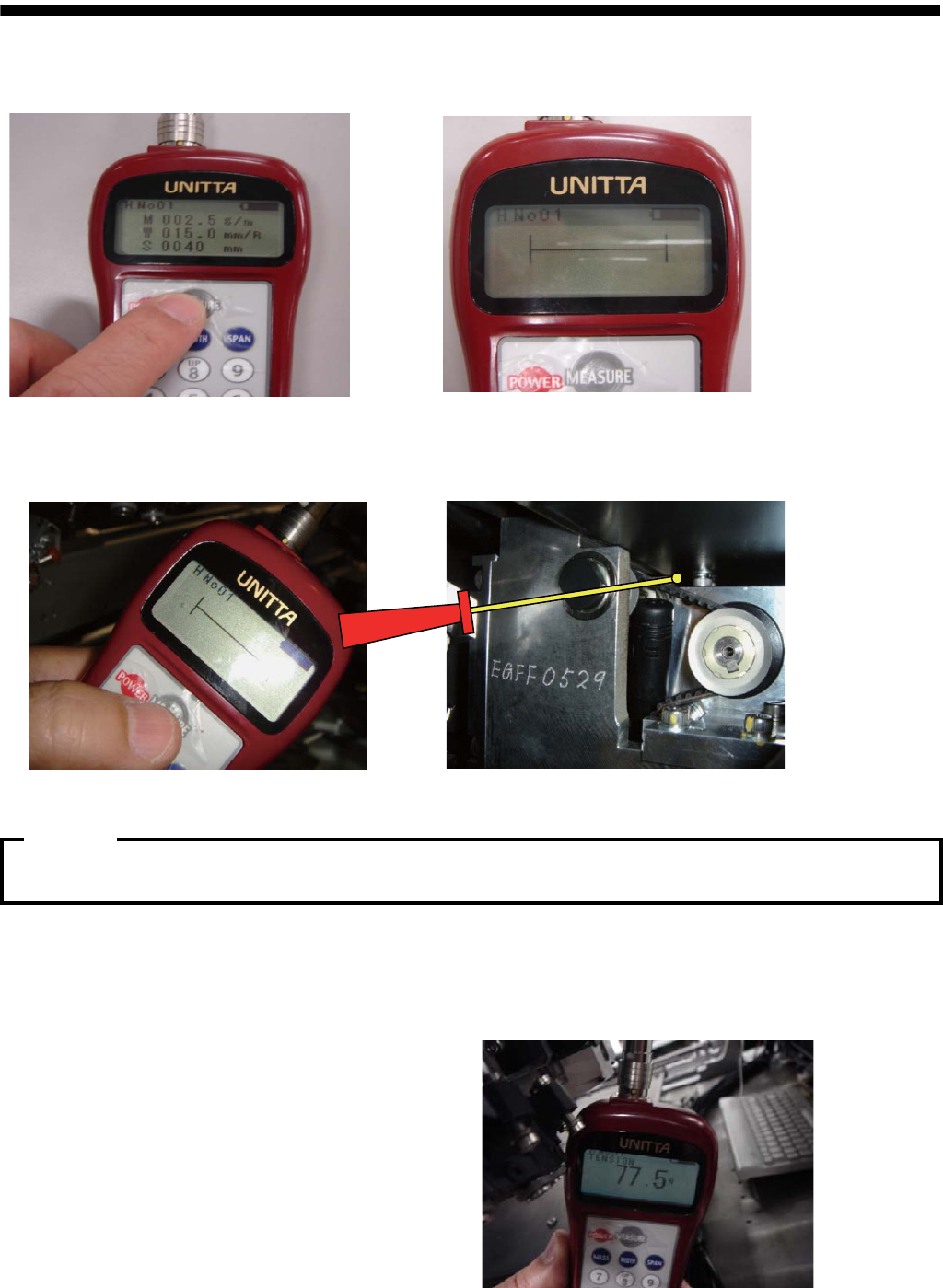 ④测量张力数次,读取安定的数值,确认在规格值内
