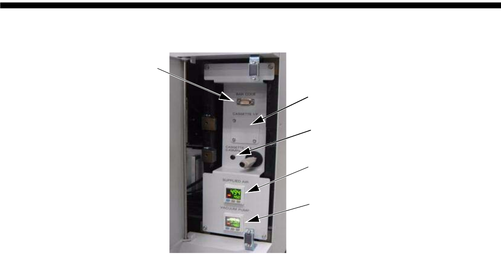 调试篇 2. 电气系统的连接 电子零件装着机 SI-G200MK 5 (CS) 2-5 (3) SI-G200MK5 后面右侧连接部分 BAR CODE 是条形码读取器用于通信的连 接器。插入条形码读取器的连 接器。 SUPPLIED AIR 显示 SI-G200MK5 供给空气通过调节器后的压 力。请调整阀,使空气源压力为 0.49 MPa (5kgf/cm 2 ) 。 V ACU UM PUMP 显示 SI-G 200MK5 内置真…