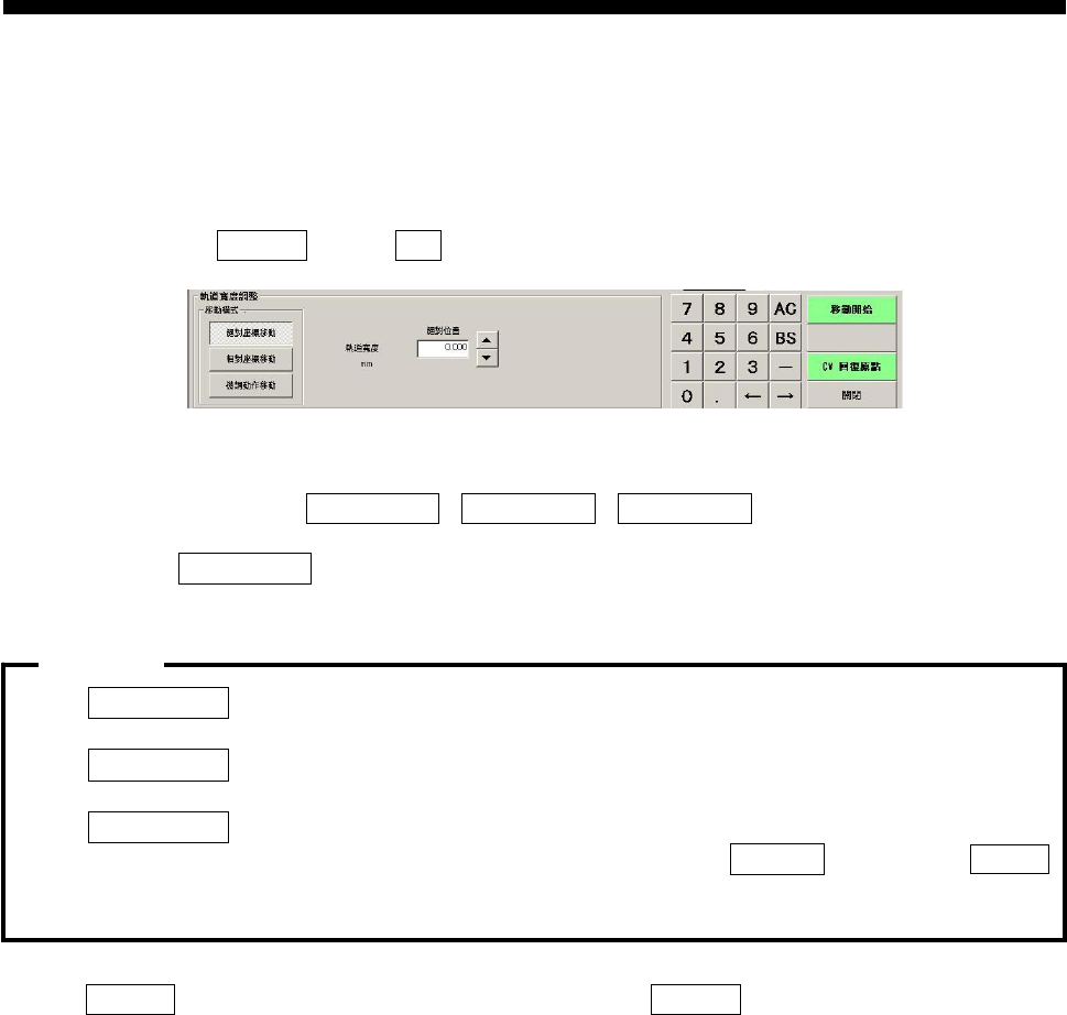 ·轨道宽度绝对位置的文本框中只能输入数值,无法变更轨道宽度。点击开始移动键依照步骤按