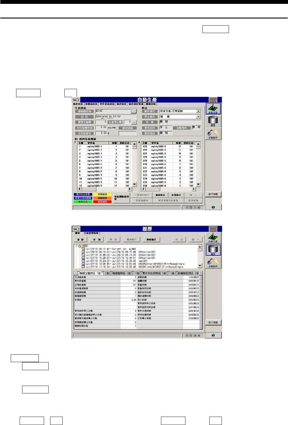 日志以外的画面需执行自动生产。→ 选择自动生产菜单或者日志菜单。