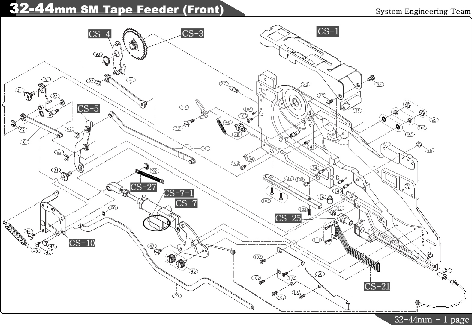 Semi-conductor System Div 24mm SM Tape Feeder (Front, Rear) - Undefined NO. PART NO. PART NAME TYPE REMARK Q'TY 74 J7265171A PCB COVER 1 SM1-MF32-077 76 J7066316A STOPPER OUTTER PIN 1 SM1-MF32-014 78 J7066181A T LEV…