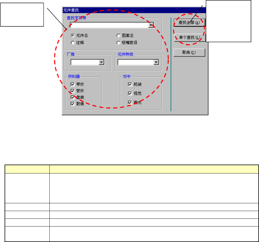 查找字符串 用按钮指定元件名、涂层类型名、注释、吸嘴数目。