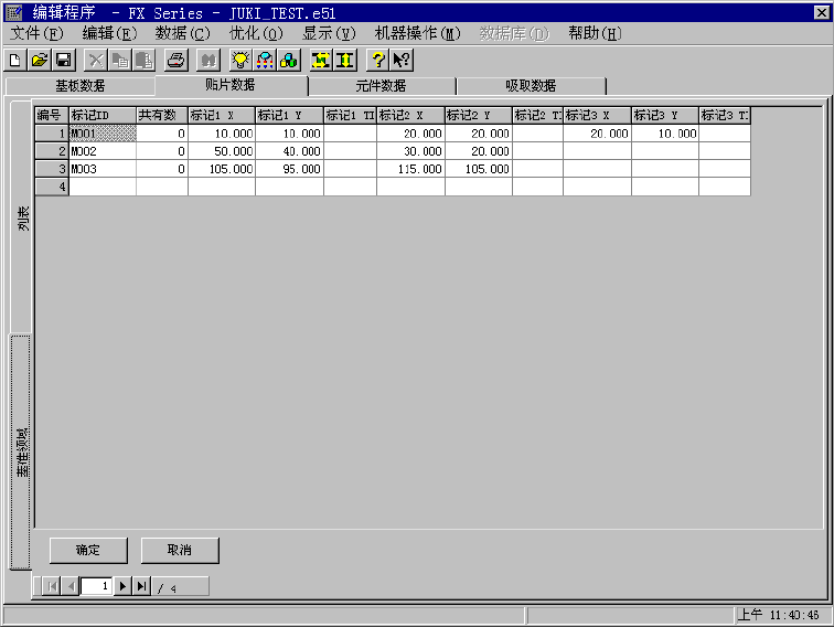 设置试打条件:在生产条件画面的试打范围里指定贴片点。只有在本项目指定为[是]的贴片数据,