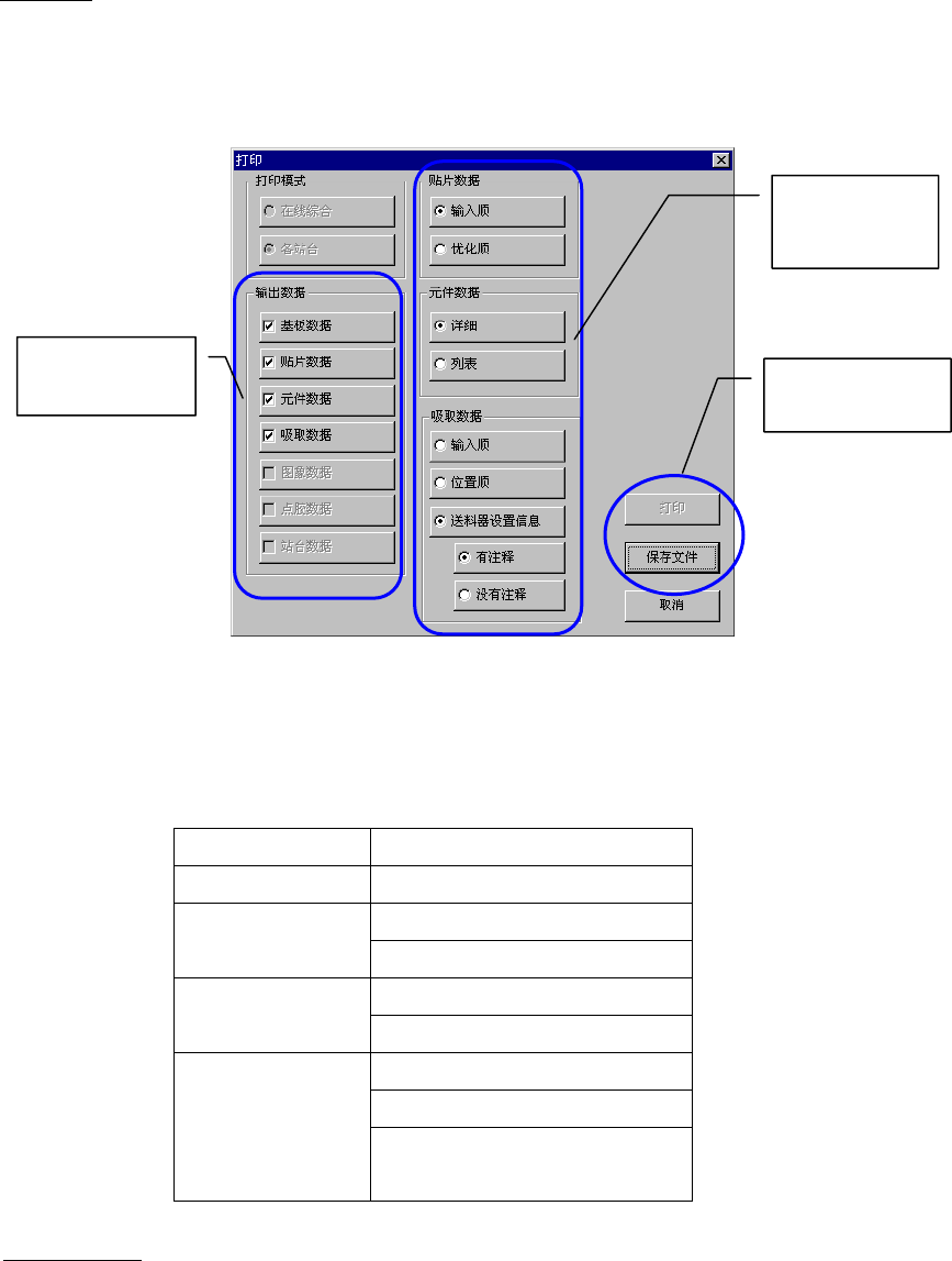 [基板数据]、[贴片数据]、[元件数据]、[吸取数据]构成,从对话框中选择需要输出(打印/文件保