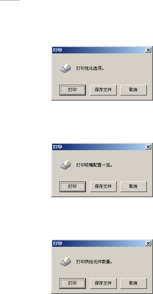 从编辑画面的菜单栏中选择[文件]→[打印]→[优化]后,可选择[选项]、[吸嘴分配]、[供应数