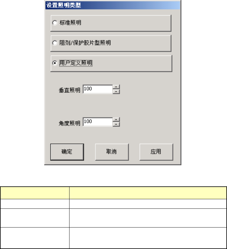 选择了[用户定义] 照明时,可以直接设定垂直照明、角度照明的量度。