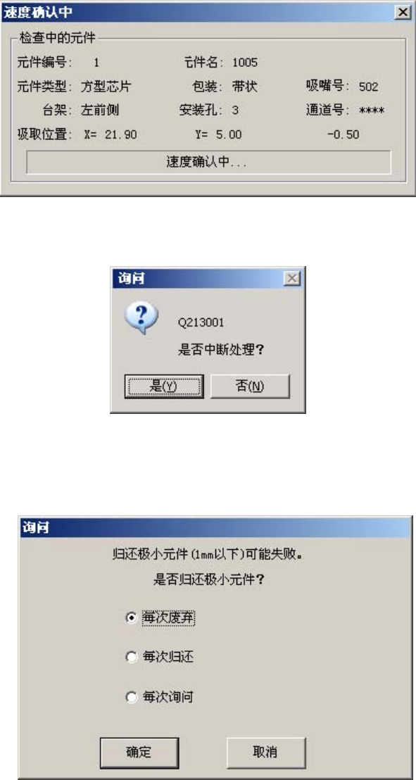 速度确认操作中显示如下对话框。显示进行速度确认的元件内容及吸取位置,逐项