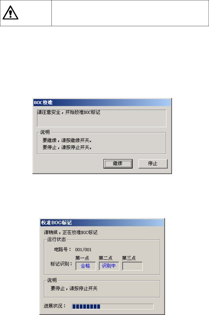 在执行 BOC 标记校准过程中,若因某种原因需要停止执行时,请按下<停止>键。