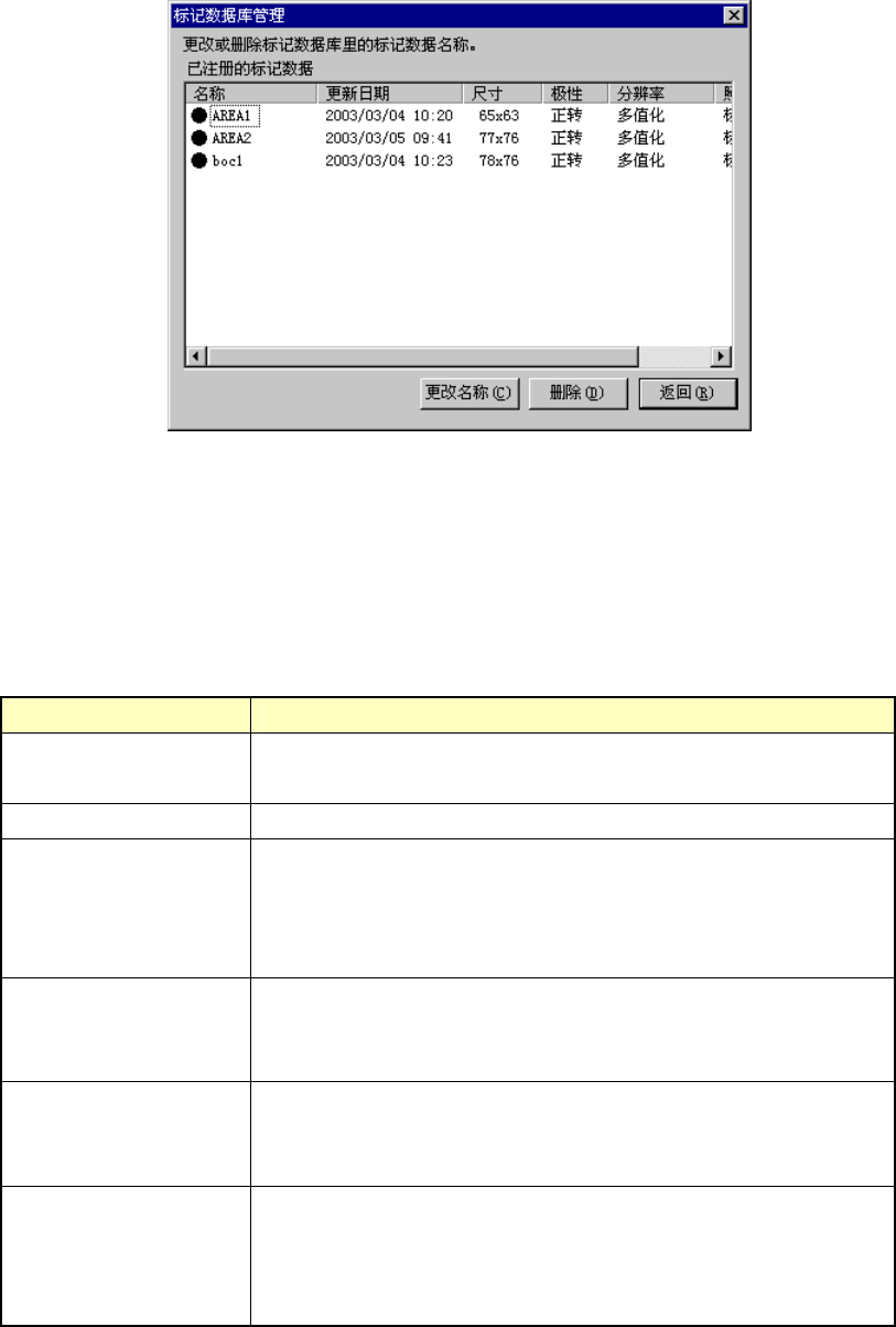 以一览表显示已注册的标记数据库中的标记数据。