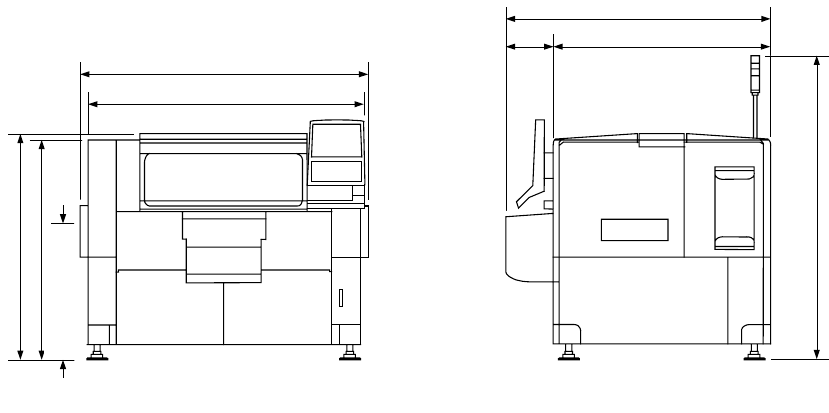 第 1 章 设备概要 1-18 1.5.2 ATC 吸嘴存储数 A T C 数 : 4 套 ( 前 面 2 处 + 后面 2 处) 吸嘴存储数 :10 个 /1 套 1.5.3 基板传送高度 900±20mm(面向日本国内、中国、东南亚) 950±20mm(面向欧美) 1.5.4 设备尺寸和重量 1)外形尺寸 FX-1/FX-1R 的主要外形尺寸如下图所示。 1440 ( 1490) *1 1490 ( 1540) *1 基板搬送高さ …