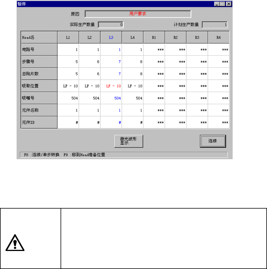 操作时也不显示生产状态,而显示图 8. 2-7 暂停状态时的显示对话框。