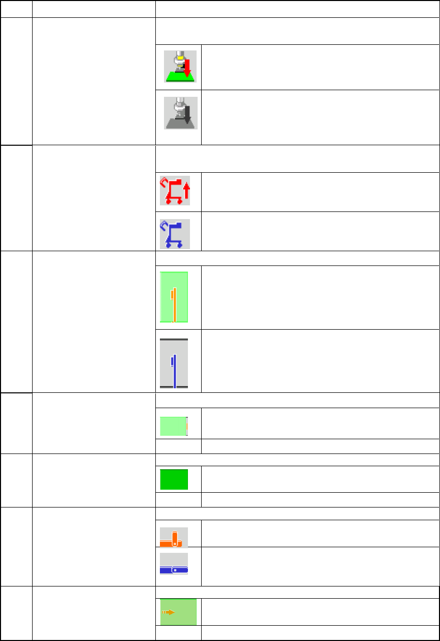 第 8 章 生产 8-30 表 8. 2-4 设备状态显示 No. 项目 显示 显示送料器台架的状态。 (不间断运行时显示。) 送料器台架有效状态(生产状态) 1 送料器台架状态 (前/后) 送料器台架无效状态(停止状态) * 有效状态:彩色,无效状态:灰色 显示统一交换台位置传感器状态。 ON 状态(台架下降) 2 统一交换台位置传感器 (左前 ・ 右前 左后 ・ 右后) OFF 状态 显示 IN,OUT 传感器状态。 ON 状态 (…