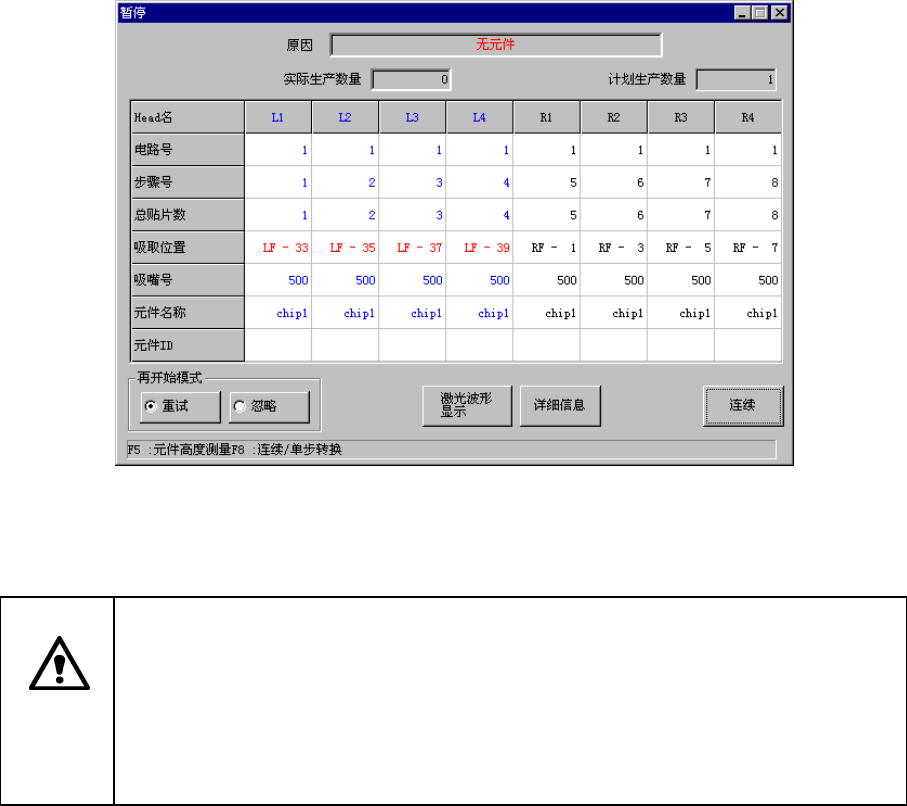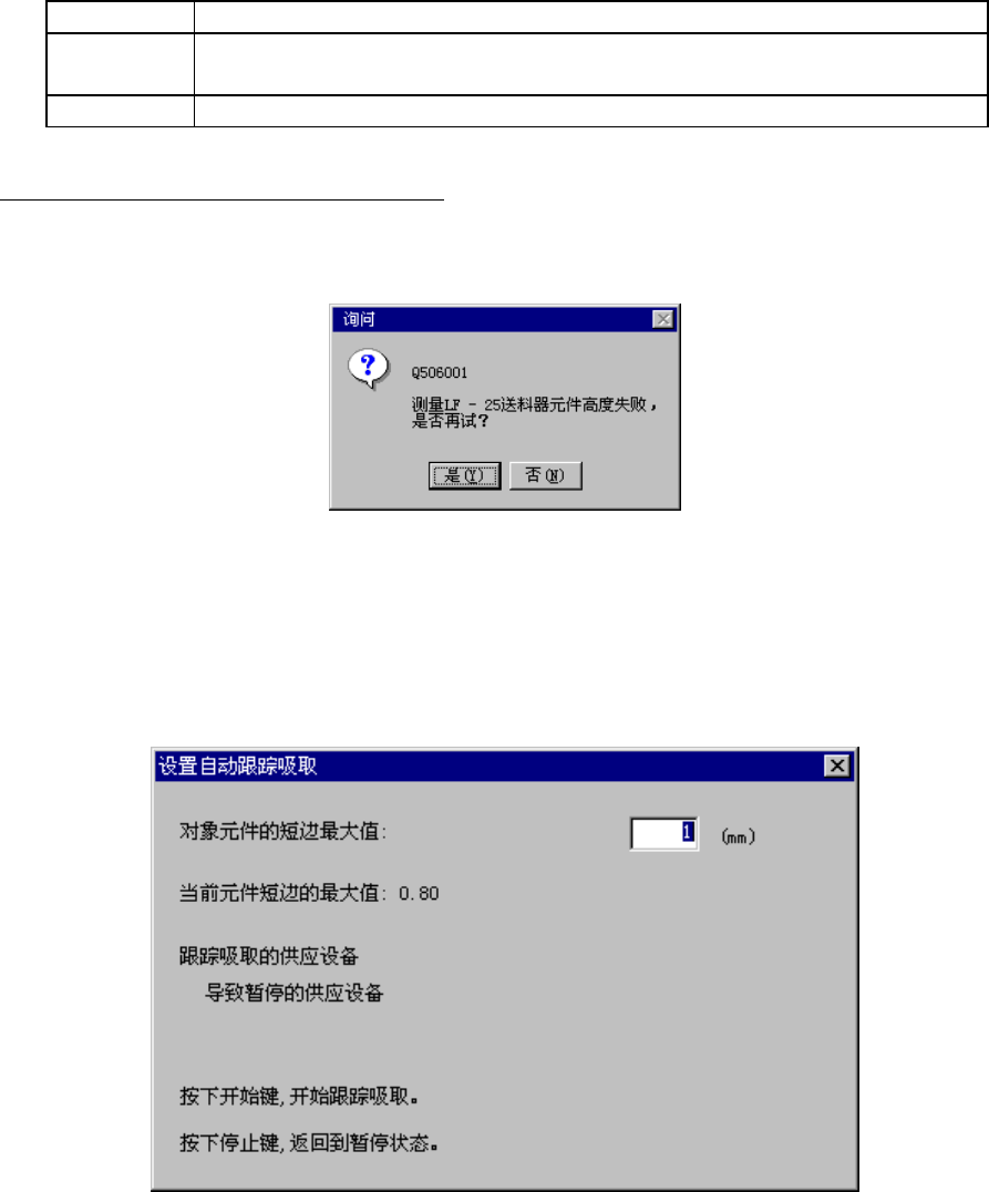 充的芯片、圆筒形元件测量完高度后才可再开始生产。如测量高度失败,会显示如下对话框。