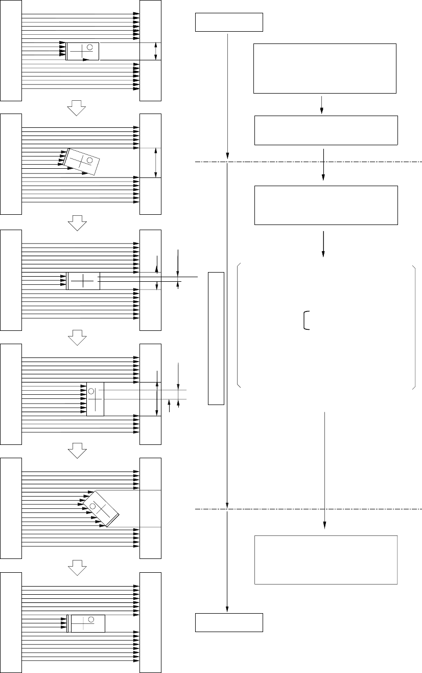 第 1 章 设备概要 1-27 1.7.4 定心系统 本设备采用激光校准传感器,从侧面照射激光,读取其阴 影,识别元件位置、角度的非接触式 定心方式。 レー ザ ア ラ インセ ンサ θ Z 图 1.7-7 MNLA 贴片头激光校准 通过Z轴的上下移动、真空吸取元件后,投射激光。 元件遮住激光的部分成为阴影,以 θ 轴旋转元件时,显示阴影宽度的变化。可从阴影 宽度的变化求出所吸取元件的位置偏移及角度偏移,校正该偏移量后进行贴片。 L 激…