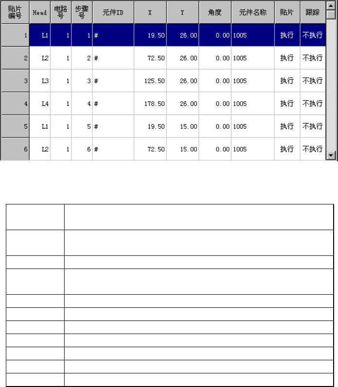 根据顺序,按贴片编号顺序,显示贴片点的有关信息。