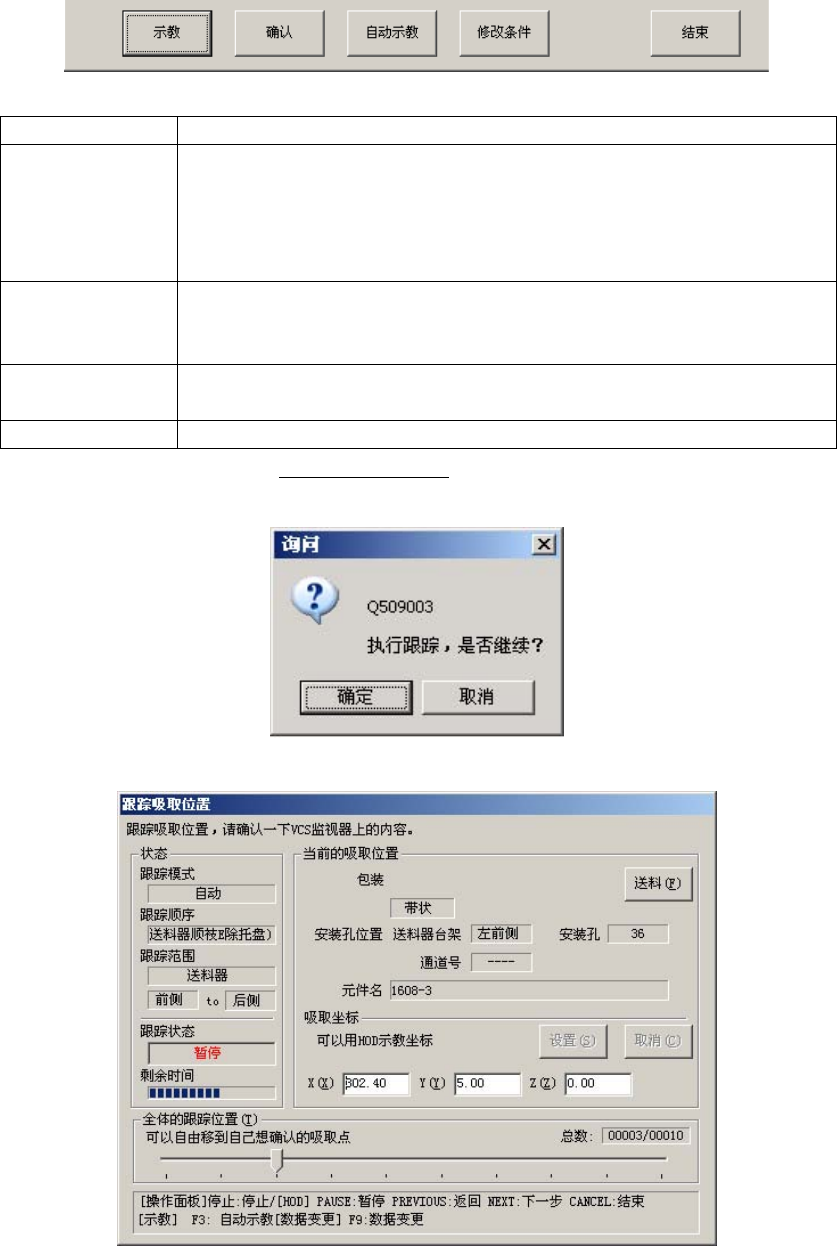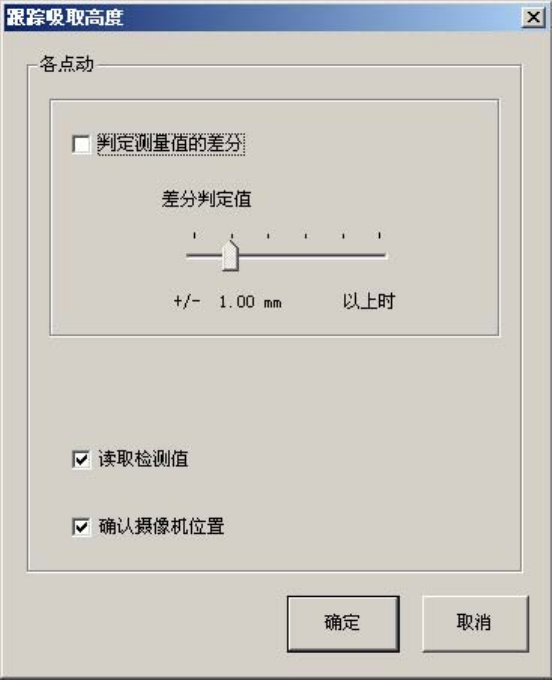 有关吸取位置自动示教、确认、示教中显示的吸取跟踪对话框,请参见《6.5.4.4 坐标系:吸
