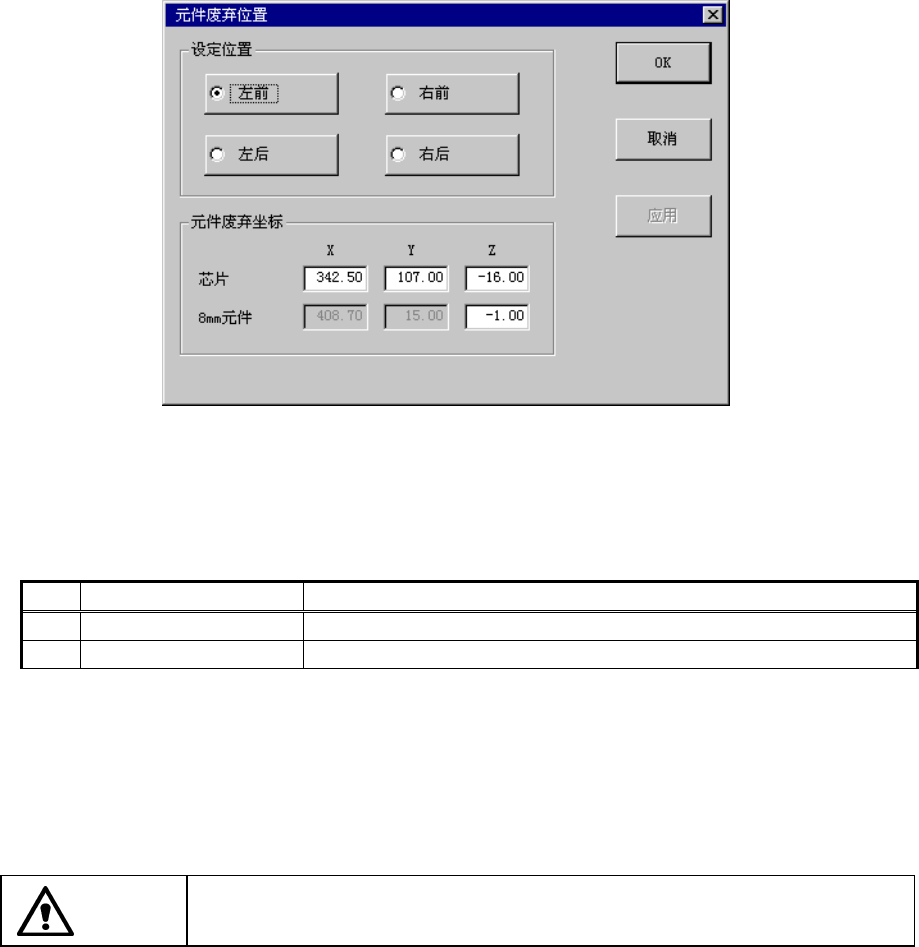 选择菜单栏的[设置各组]-[元件废弃位置]后,显示如下图的[元件废弃位置]设置对话框。