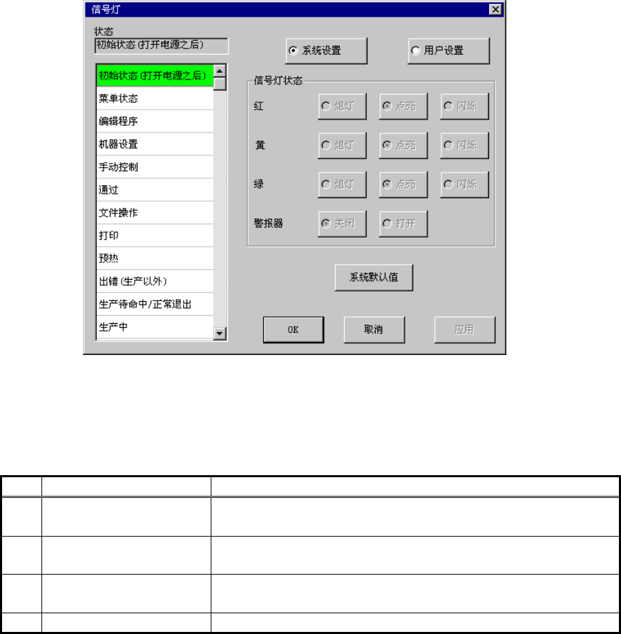 设置各操作状态的信号灯点亮模式。