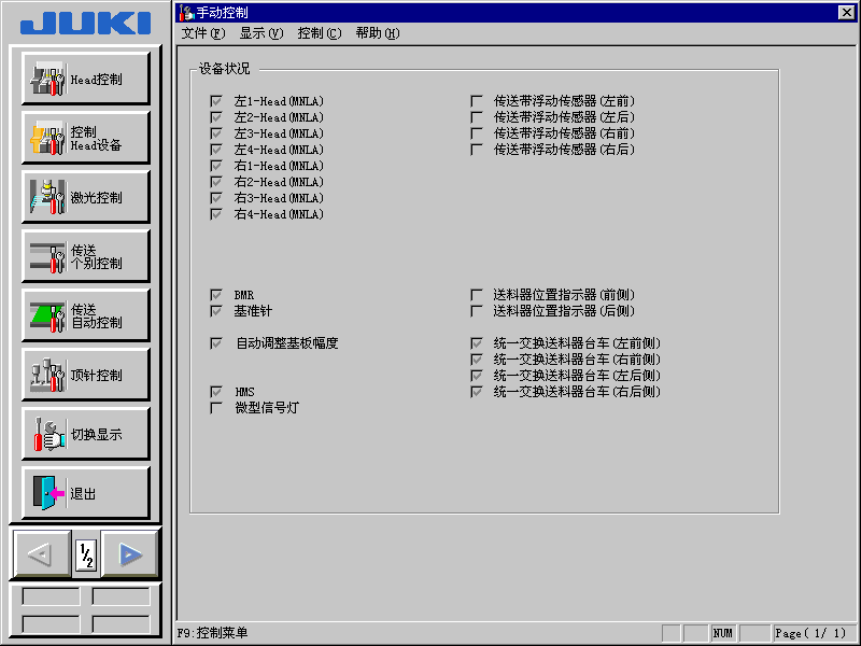 在状态图显示的初始画面中,传送、ATC、基准销、贴片头(Head)等以图形按钮显示,单击这