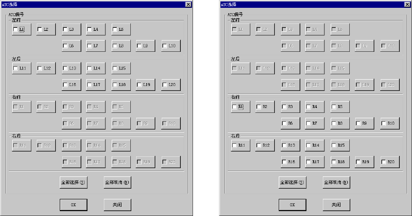图 10.2-20 选择 ATC 号对话框(左 ATC) 图 10.2-21 选择 ATC 号对话框(右 ATC)