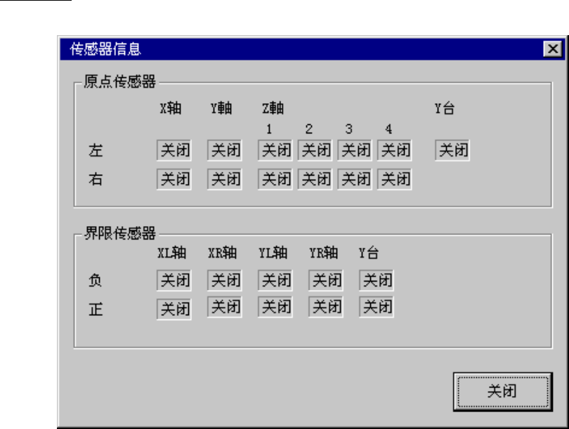 用打开/关闭按钮,显示原点传感器、界限传感器状况。