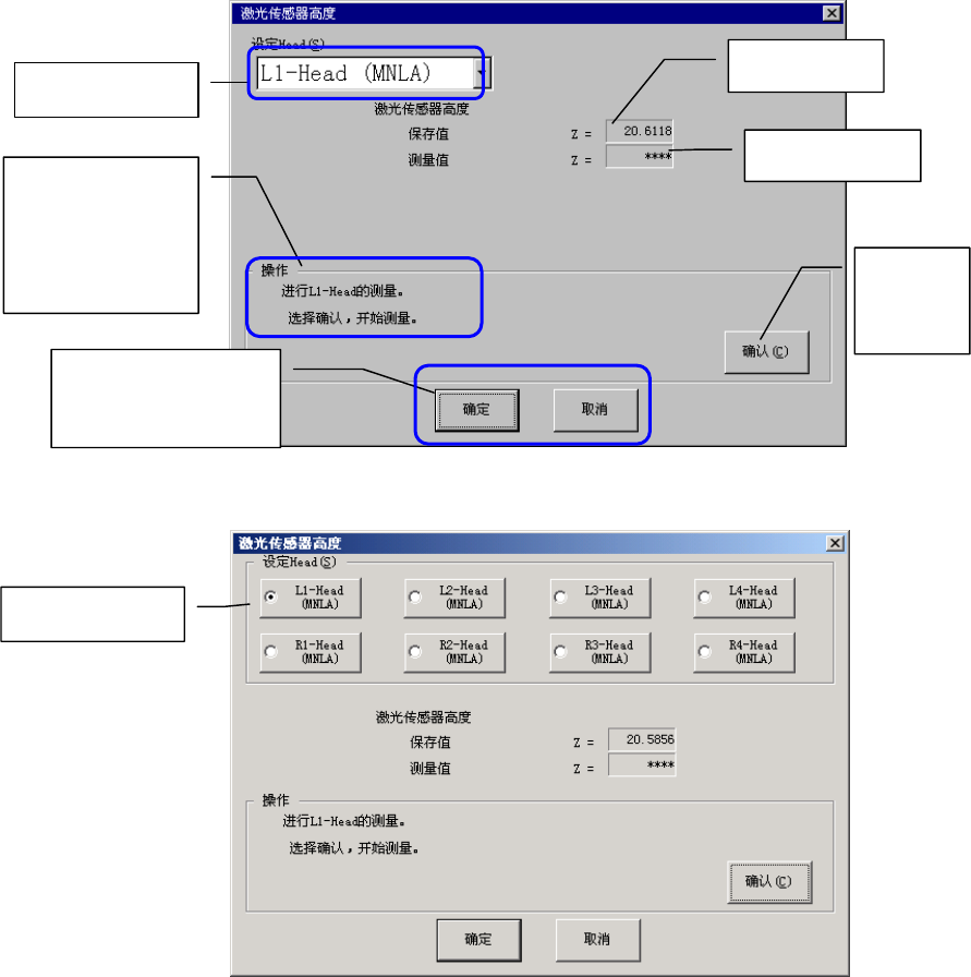 图 13.2-1 [激光传感器高度]对话框(上:FX-1/下:FX-1R)