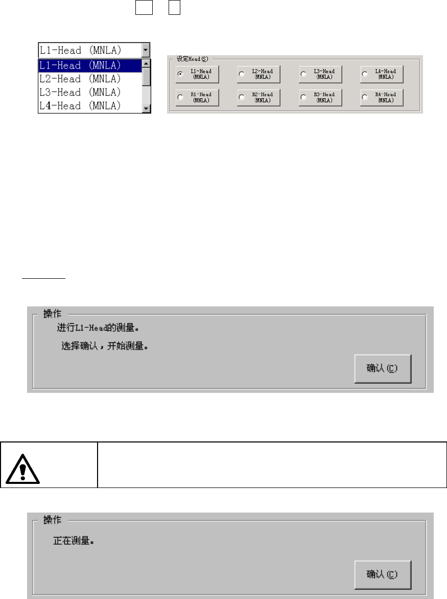 请根据操作框显示的指示,对在[设定 Head(S)] 选择的贴片头进行测量(FX-1 为从组