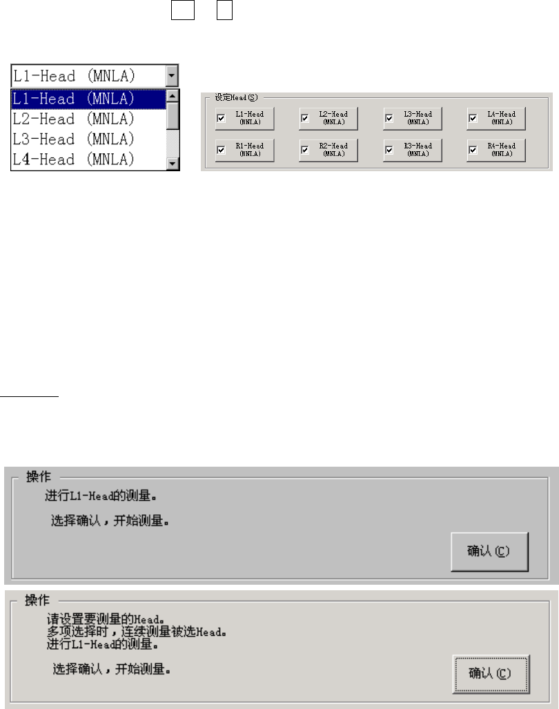 测量其它贴片头时,请从[设定 Head(S)] 中选择贴片头。贴片头变更后回到初始画面。