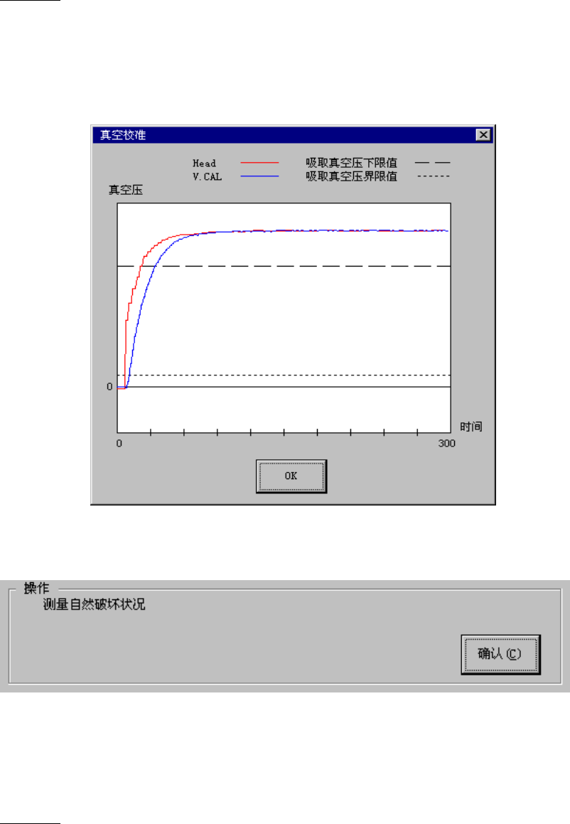 第 13 章 自动校准 13-17 图 13.2-21 压力值图表 图 13.2-22 加压破坏状况 确认选择 单击[确认]按钮。自动测量加压破坏状况。 测量内容 ①设定的贴片头移动到真空校准上,测量三次加压破坏状况。 显示第二次和第三次的平均值。 测量后显示的压力值图表是第三次的数据。