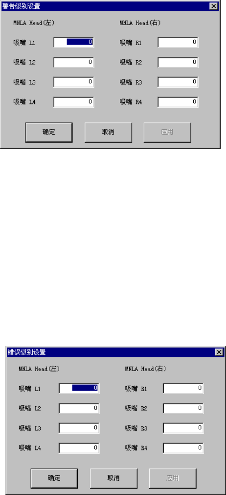 从菜单栏中选择[数据]→[警告级别设]→[各贴片头]后,显示下图的[警告级别设置]对话