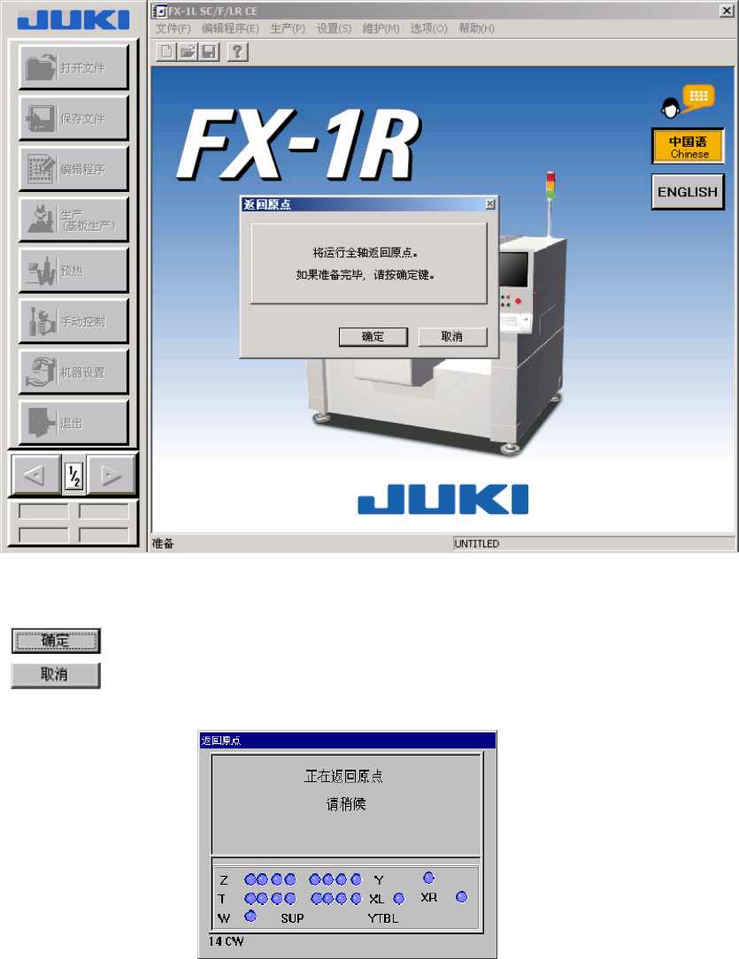完成系统初始化后,显示命令按钮和桌面,弹出对话框,询问是否返回原点。