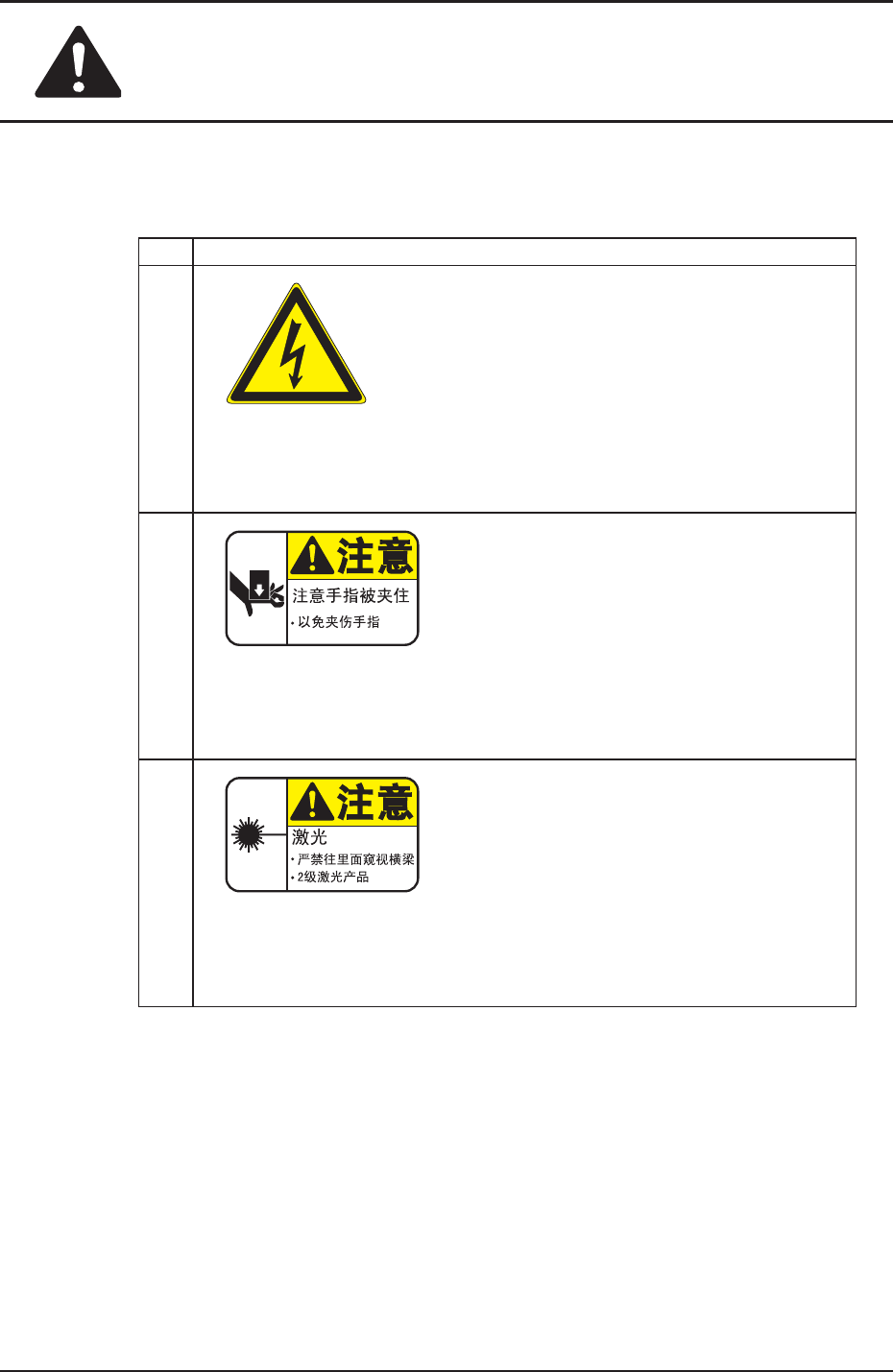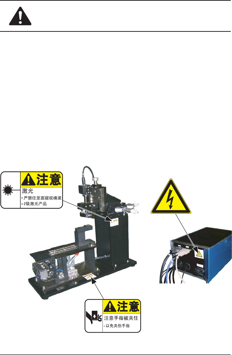 警告标签因破损无法看清楚内容时,请联系本公司服务部门更换新的标签。