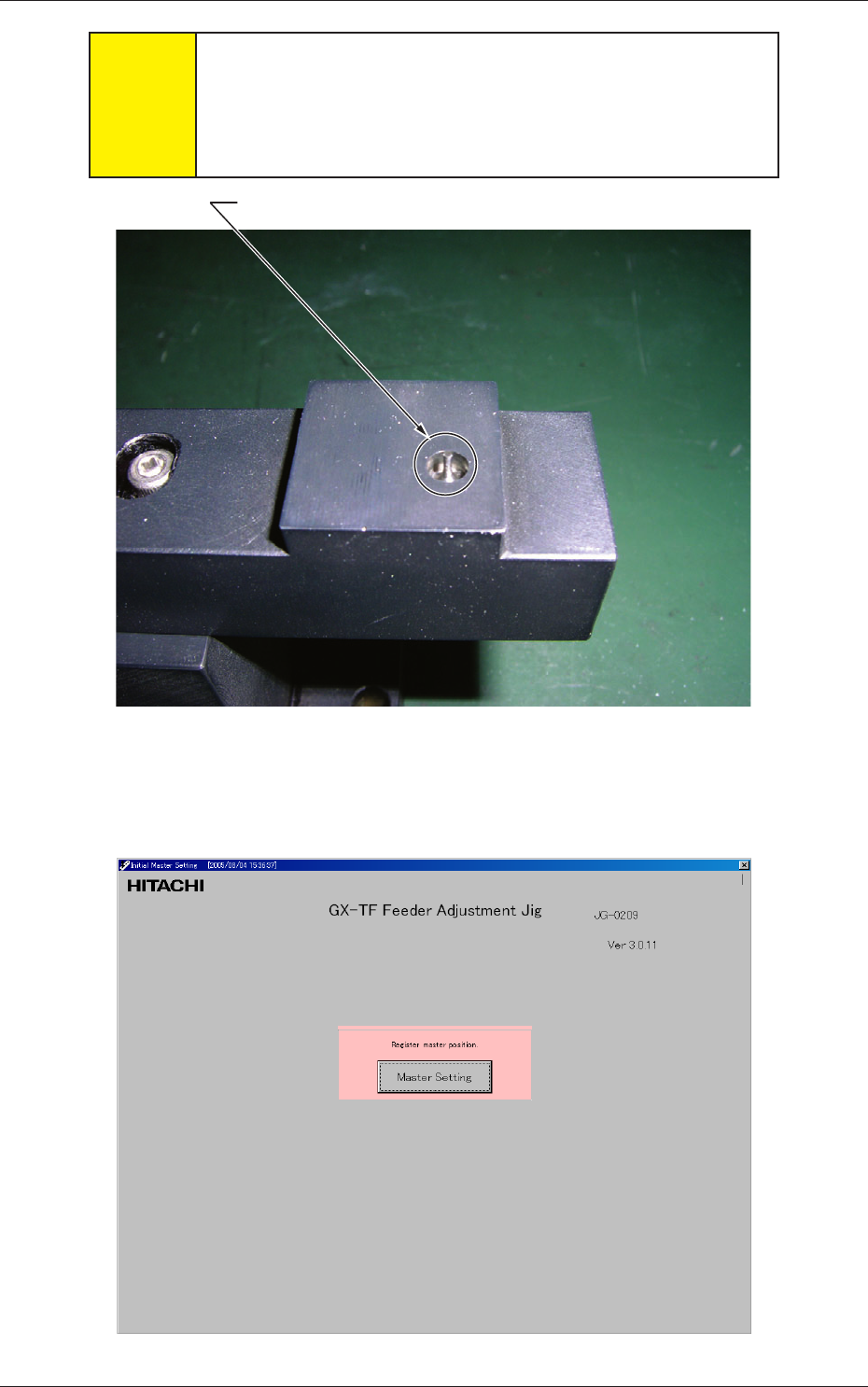 4-1 1. 标准位置的登录 ( 治具原点对齐 ) 请在作业前将治具的电器设备箱电源转到“ON”侧,然后接通个人计 算机电源,启动送料器调整治具软件。 Notice PC 电源处于“ON”状态时,若将电器设备箱电源转到“OFF”侧,有 时也会切断供给到个人计算机的电源而损坏个人计算机。 Procedure (1) 在治具的调整台安装吸取位置标准治具。 安装时,请对齐吸取位置标准治具的孔和调整台的销。 安装前请确认调整台的安装面及…