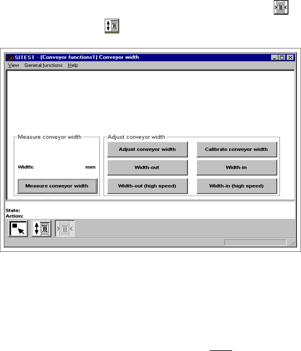 ● If you wish to test the width adjustment functions or to calibrate the conveyor width, click on the
