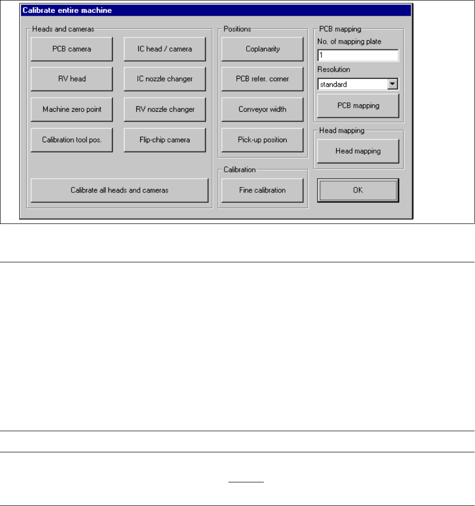 Fig. 3.2.1 "Calibrate entire machine" Setting Box (Example: "SIPLACE 80F