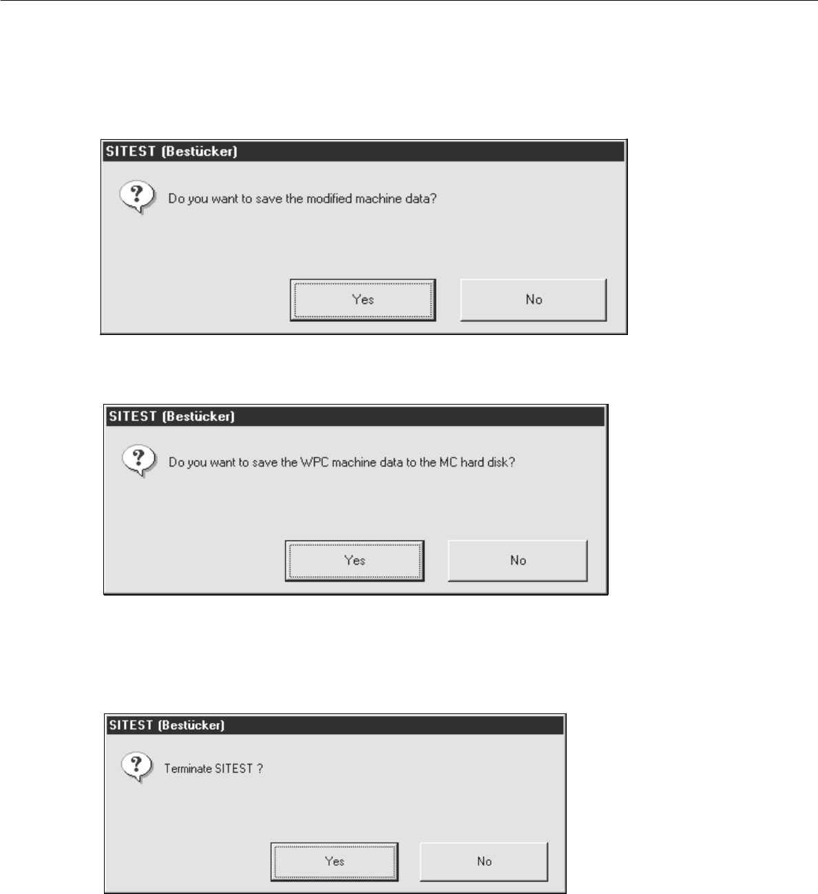 ● Click on the Yes button. The test program is terminated.
