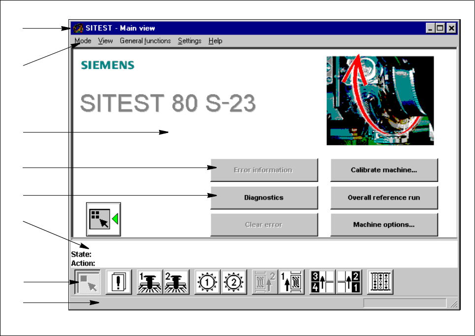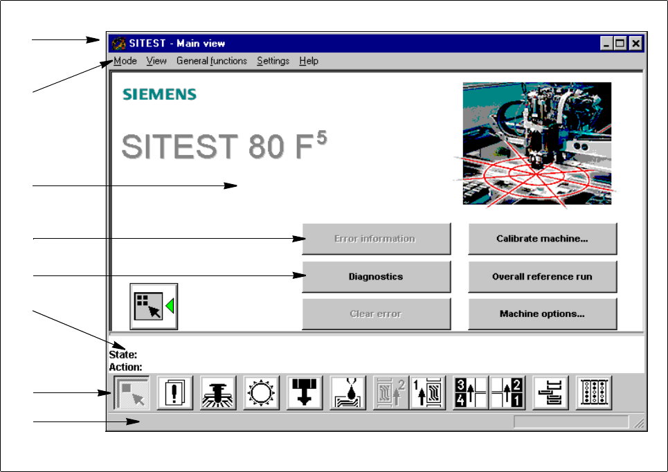 0 Introduction to the User Interface of the Test Program User Manual Test Program SITEST 0.2 Components of the User I nterface Software Version 405.xx Issue 01/99 0 - 6 Fig. 0.2.2 "Main View", Machi ne T ype 80…