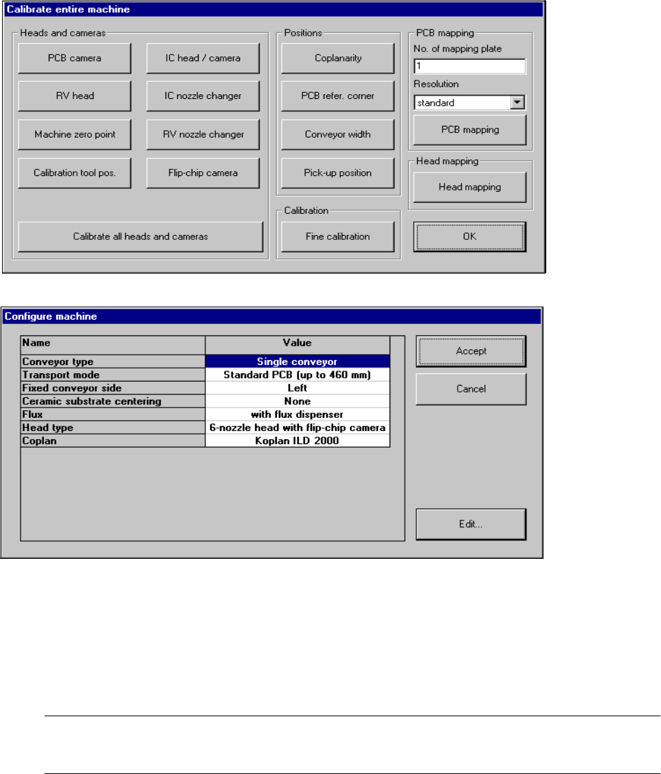 A settings box may contain, for instance, options for the setting or configuration of the machine (see examples