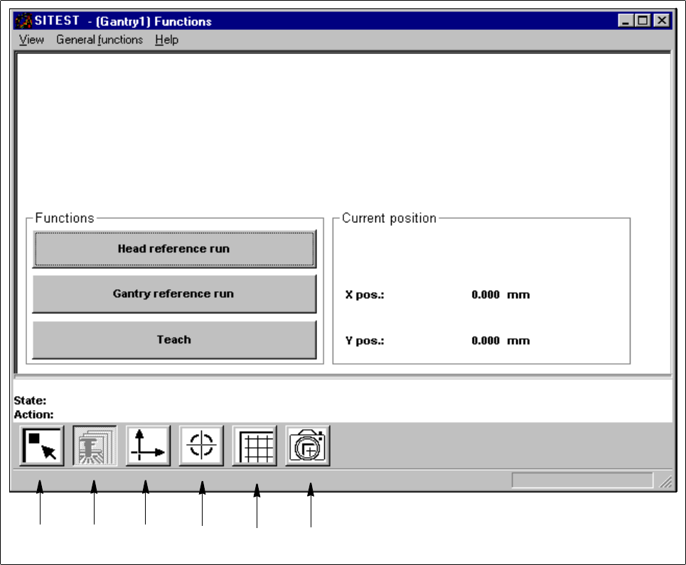 0 Introduction to the User Interface of the Test Program User Manual Test Program SITEST 0.3 User Interface - Displays Software Version 405.xx Issue 01/99 0 - 22 0.3.3 "Gantry " Displa y The "Gant r y"…
