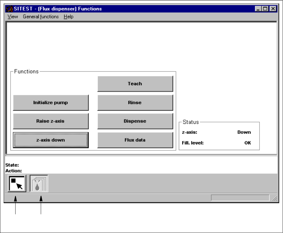 The "Flux dispenser" display contains all buttons required for testing the functions of the flux dispenser.