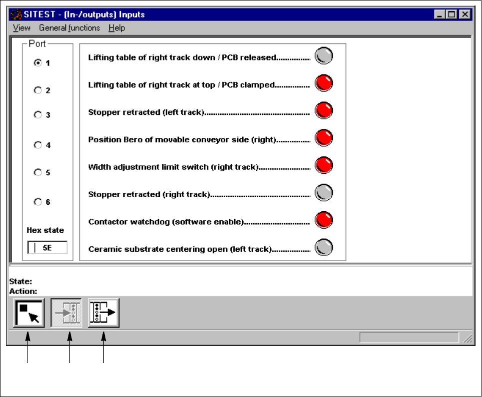 With the aid of the icons and radio buttons contained in the "In- / outputs" display, all functions for testing the
